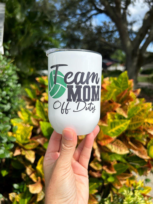 Team Mom Off Duty wine glass